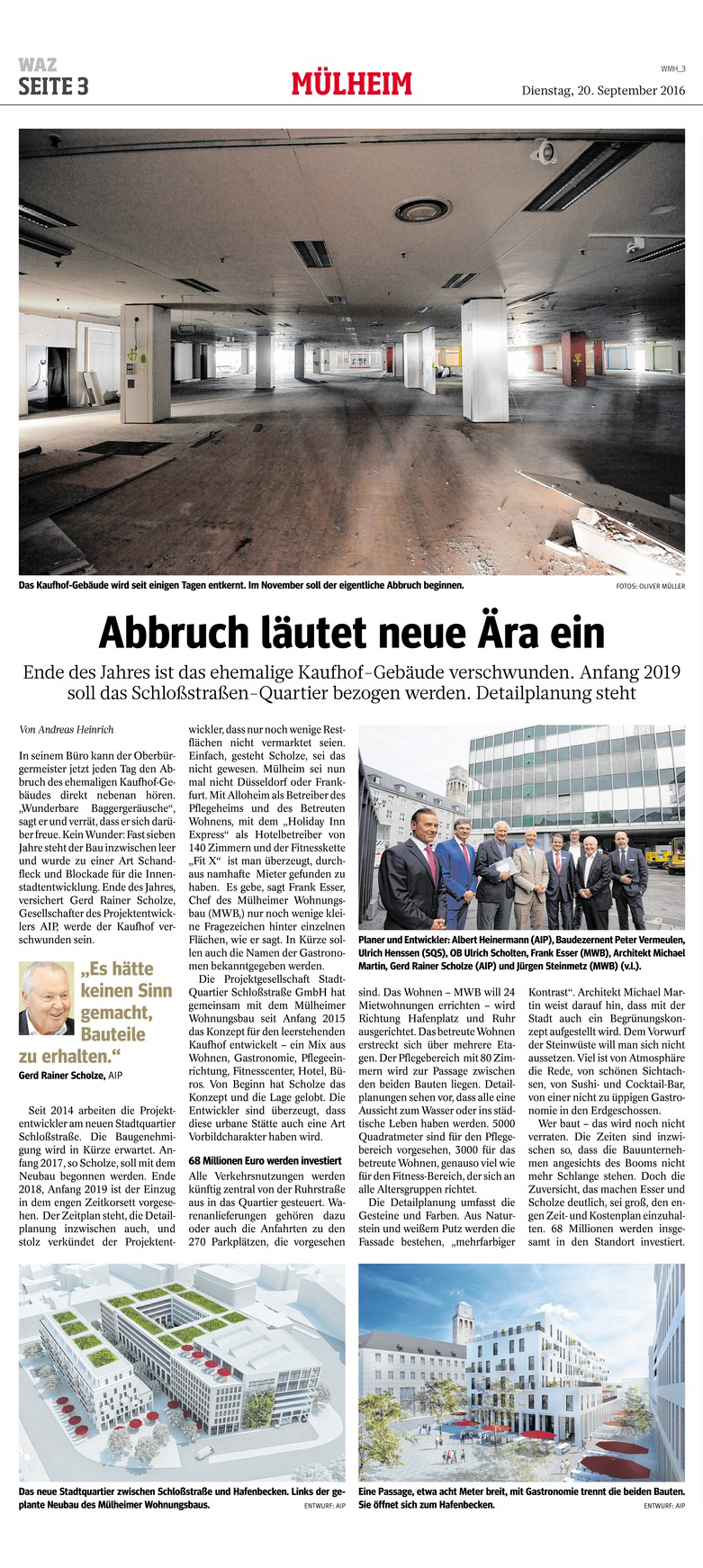 20.09.2016 | WAZ - Mülheim - Abbruch leitet neue Ära ein